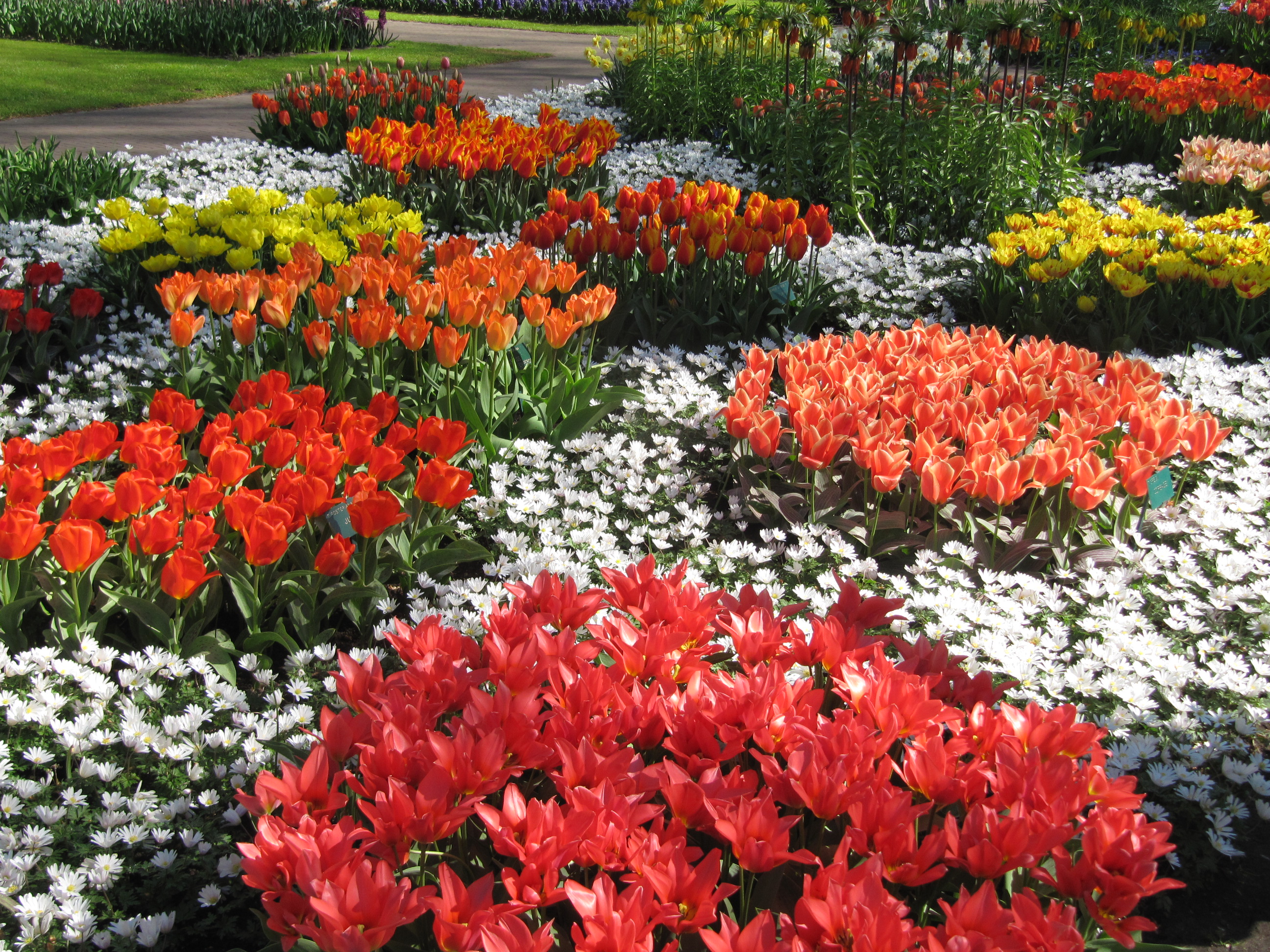 The current public gardens were established by the Major of Lisse in 1949. Today the 32 hectares of garden are planted every year by leading bulb growers and suppliers ( 86 of them in fact) They come from surrounding area, which of course is the key bulb growing district of the Netherlands –Lisse. Every weekend different flower exhibitions are featured in the 3 major pavilions. It is a clever commercial for a significant dutch business.